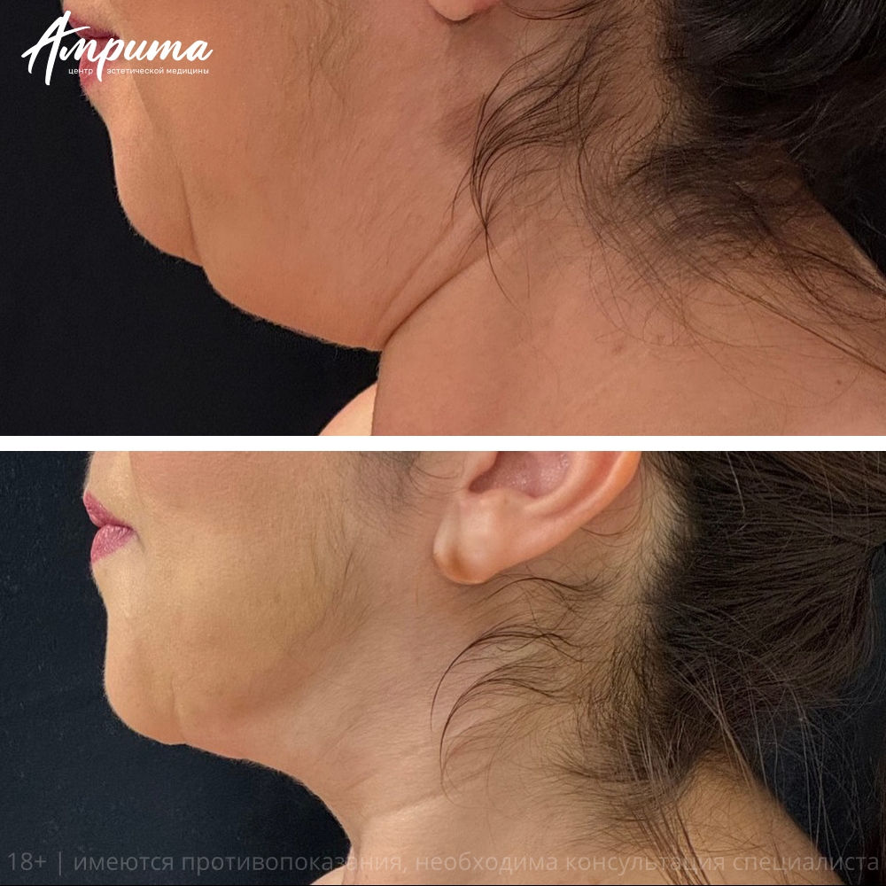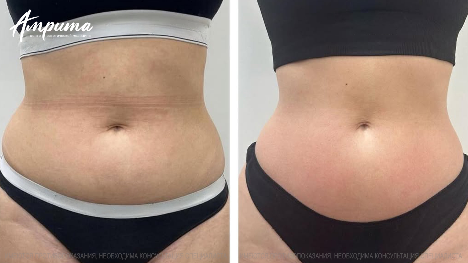 Кожа подтягивается и уплотняется, а лишние объемы уходят.