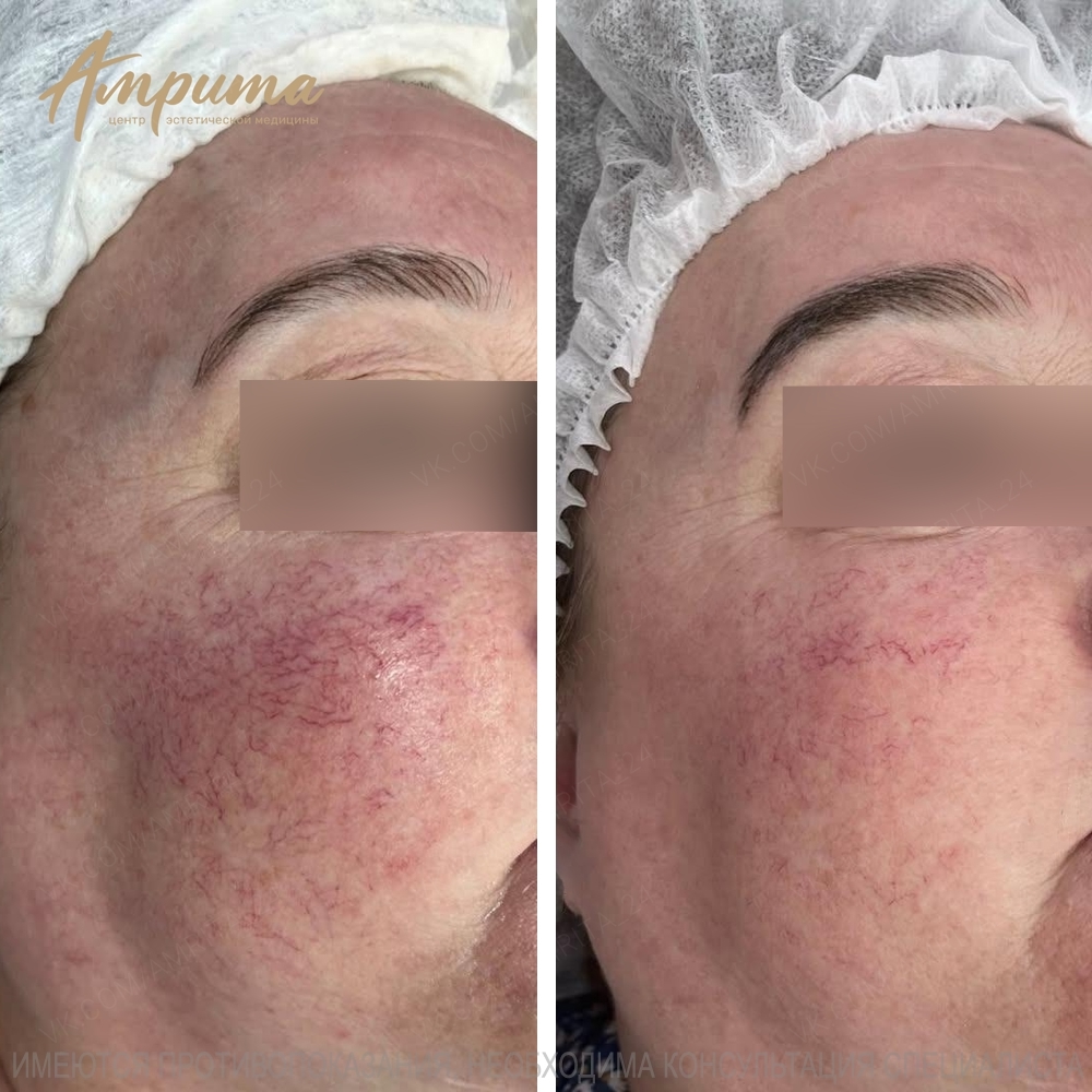 Эффект виден сразу. При лечении розацеа или удалении купероза может потребоваться несколько сеансов с интервалом 2-3 недели.